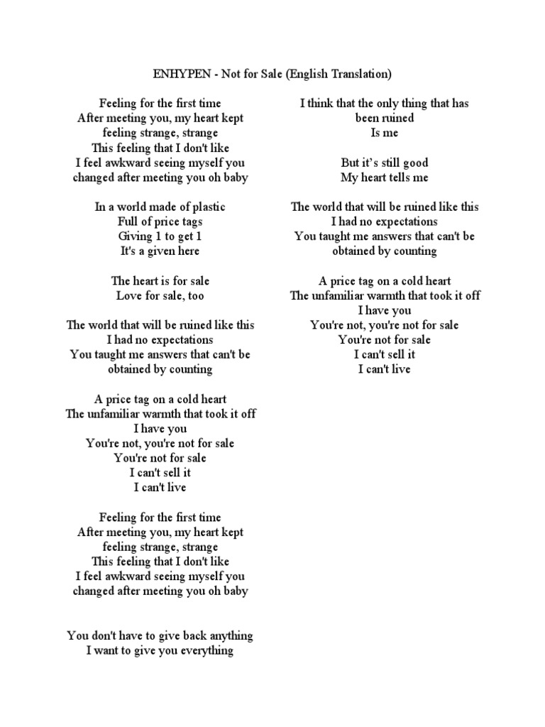 Enhypen Not For Sale English Translation Pdf
